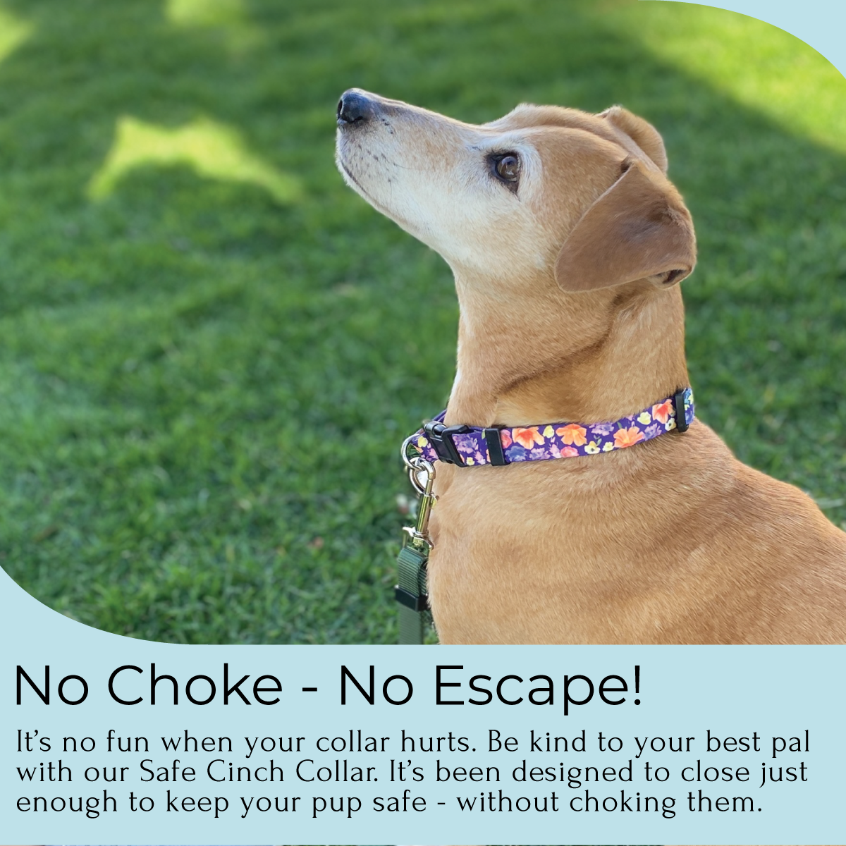 The Safe Cinch® no escape dog collar is the perfect balance of style and safety, giving you and your pup peace of mind on all your adventures. The patented cinch has been thoughtfully designed to make this escape proof dog collar the most gentle one on the market. Bye bye, choke chains and martingale styles...hello, Safe Cinch!